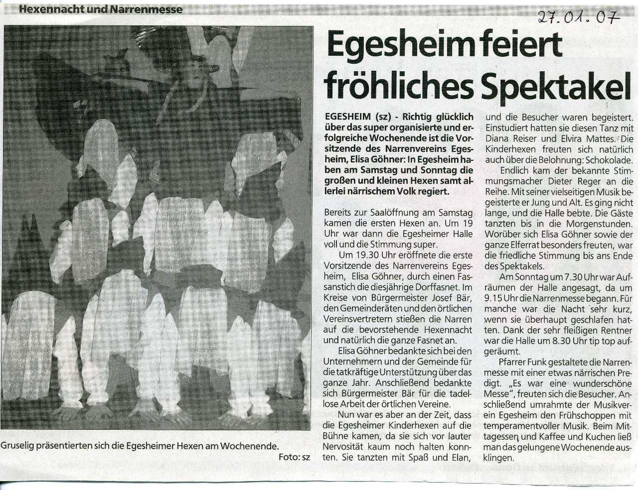 Zeitungsartikel vom 27.01.2007