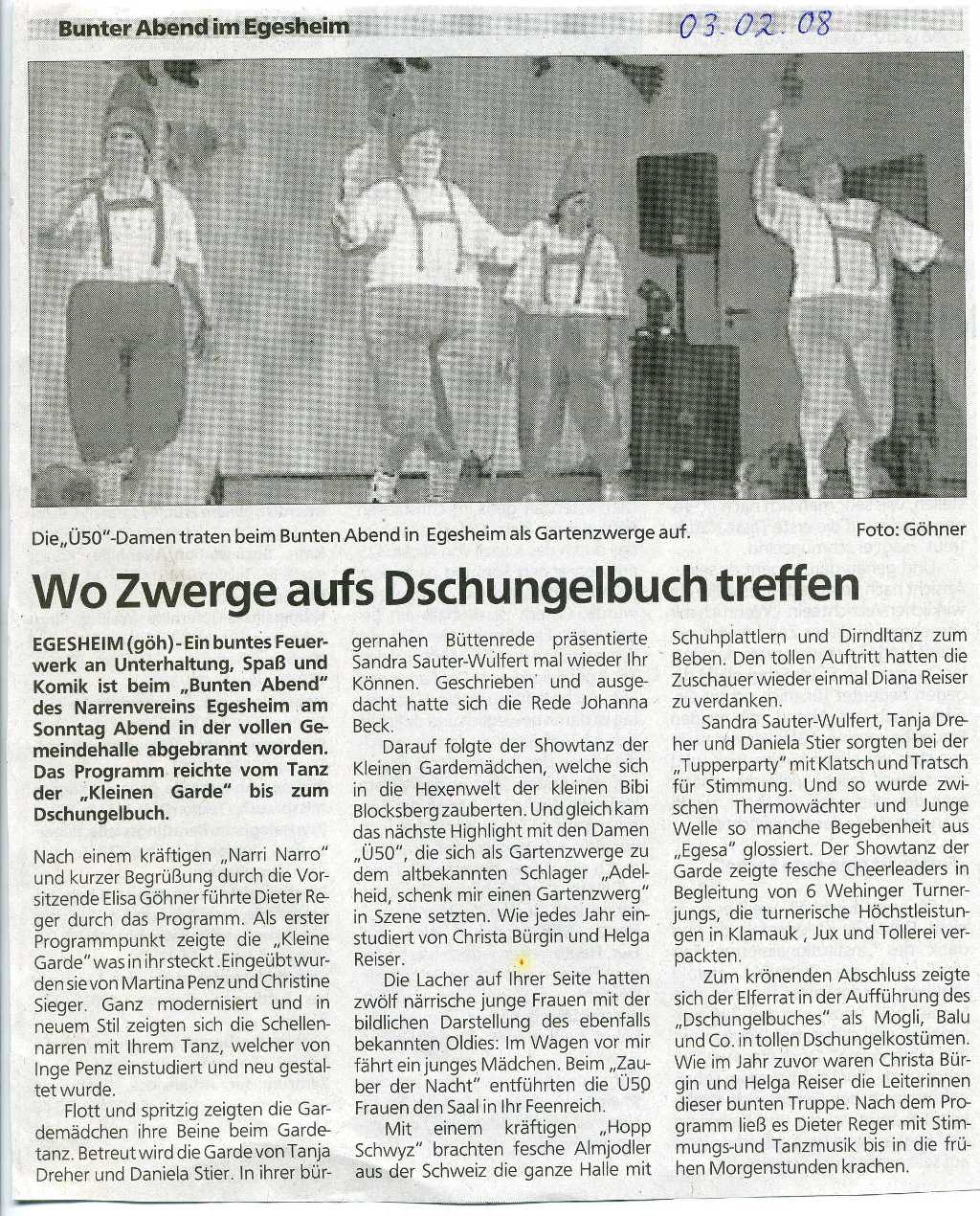 Zeitungsartikel vom 03.02.2008