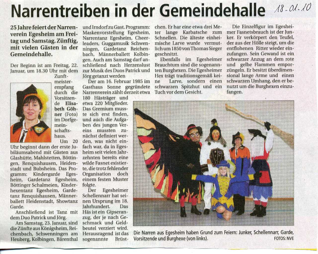 Zeitungsartikel vom 18.01.2010